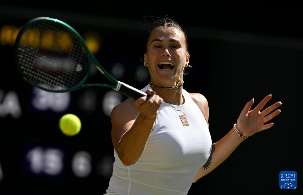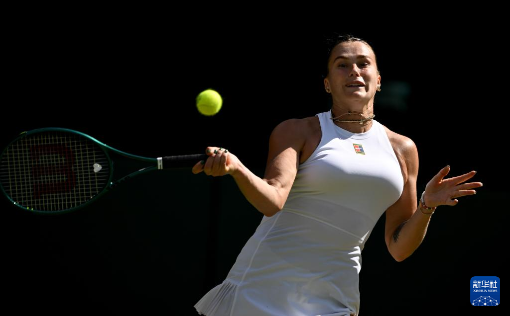 7月10日,萨巴伦卡在比赛中回球。新华社记者 李颖 摄