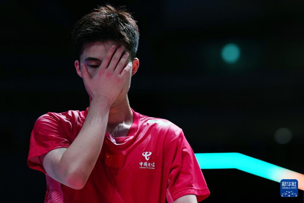 7月18日,翁泓阳在比赛中失分后。新华社记者 贾浩成 摄
