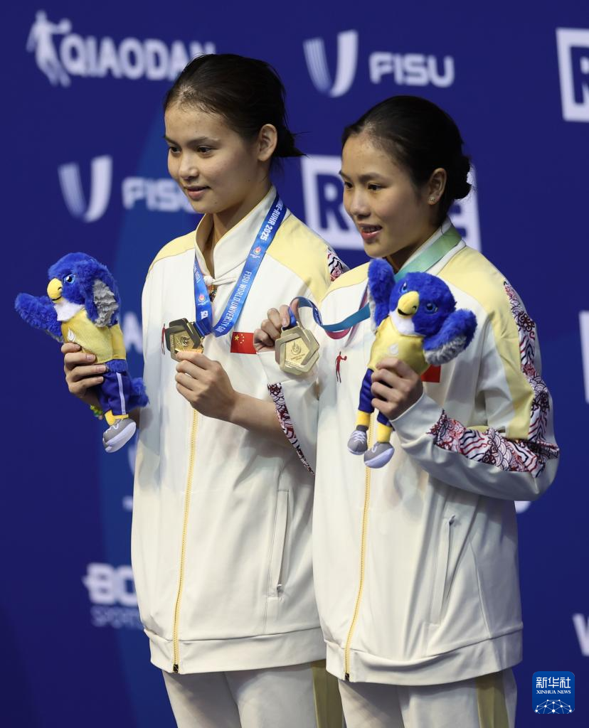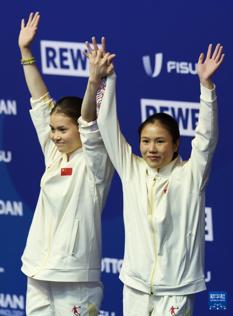 当日,在2025年莱茵-鲁尔世界大学生夏季运动会跳水女子双人10米台比赛中,中国组合何妍伟/卢为夺获得冠军。这是中国代表团在本届大运会上夺得的首枚金牌。