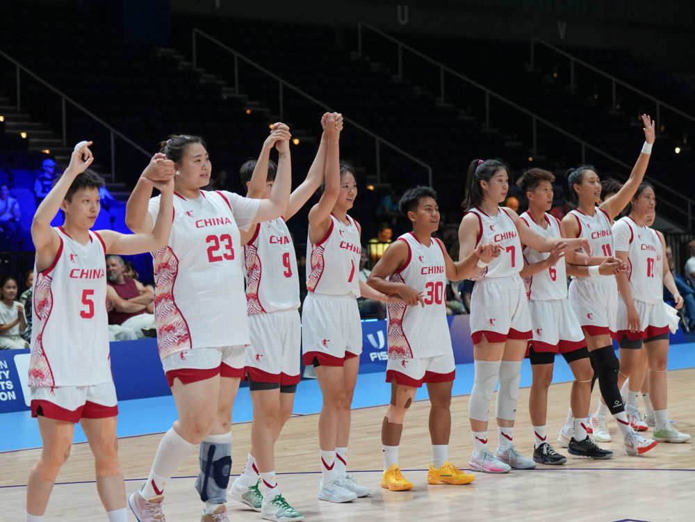 7月19日,中国队球员在比赛后向观众致谢。当日,在德国埃森进行的2025年莱茵-鲁尔世界大学生夏季运动会女篮小组赛D组比赛中,中国队82比49战胜罗马尼亚队。新华社记者 王曦 摄