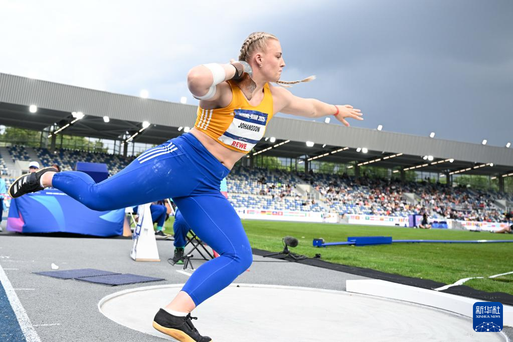 7月22日,瑞典选手约翰松在比赛中试投。最终她获得冠军。新华社记者 胡星宇 摄