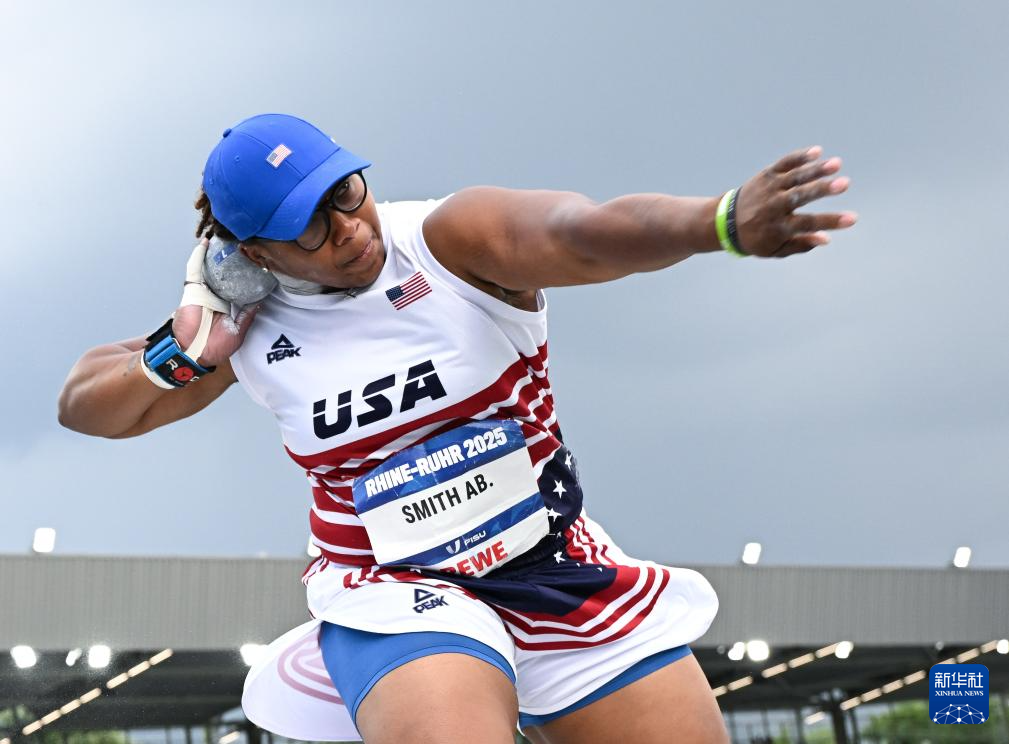7月22日,美国选手史密斯在比赛中试投。最终她获得亚军。新华社记者 连漪 摄