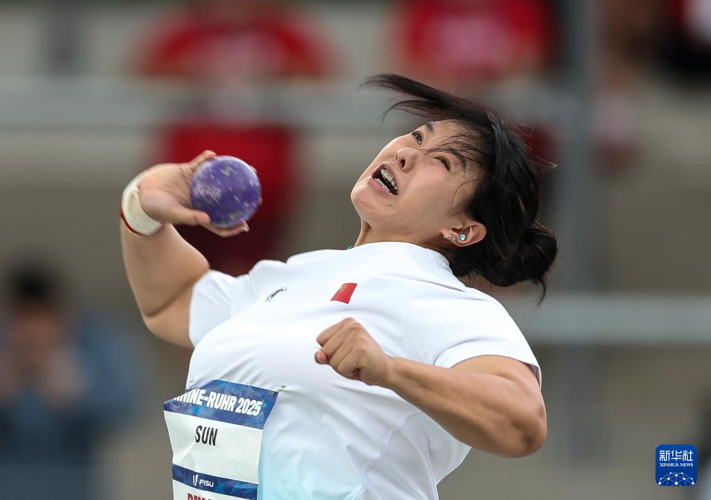 当日,2025年莱茵-鲁尔世界大学生夏季运动会田径女子铅球决赛在德国波鸿举行。