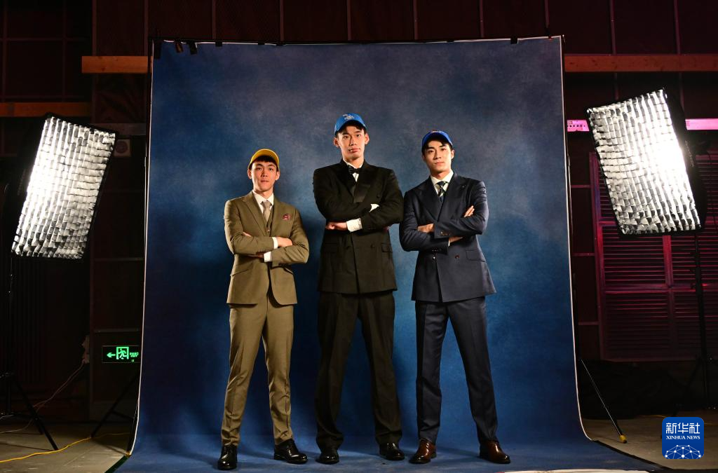7月26日,来自清华大学的杨曦皓(中)、来自太原理工大学的杜智博(右)和来自全国男子篮球联赛(NBL)广西威壮俱乐部的庞峥麟在选秀大会上合影。