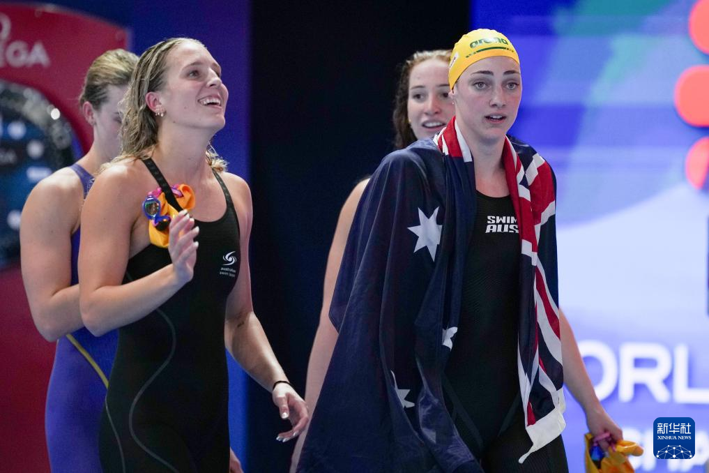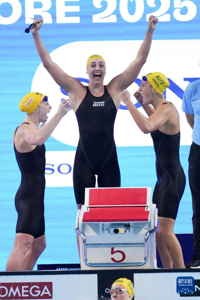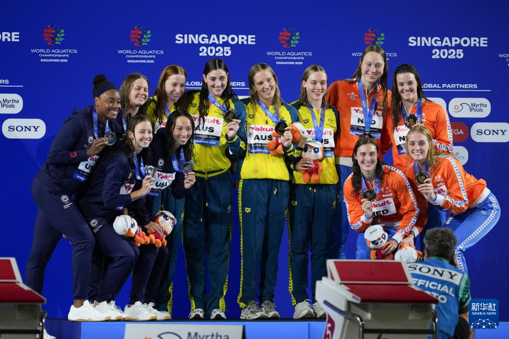 当日,2025年世界游泳锦标赛游泳女子4X100米自由泳接力决赛在新加坡举行。