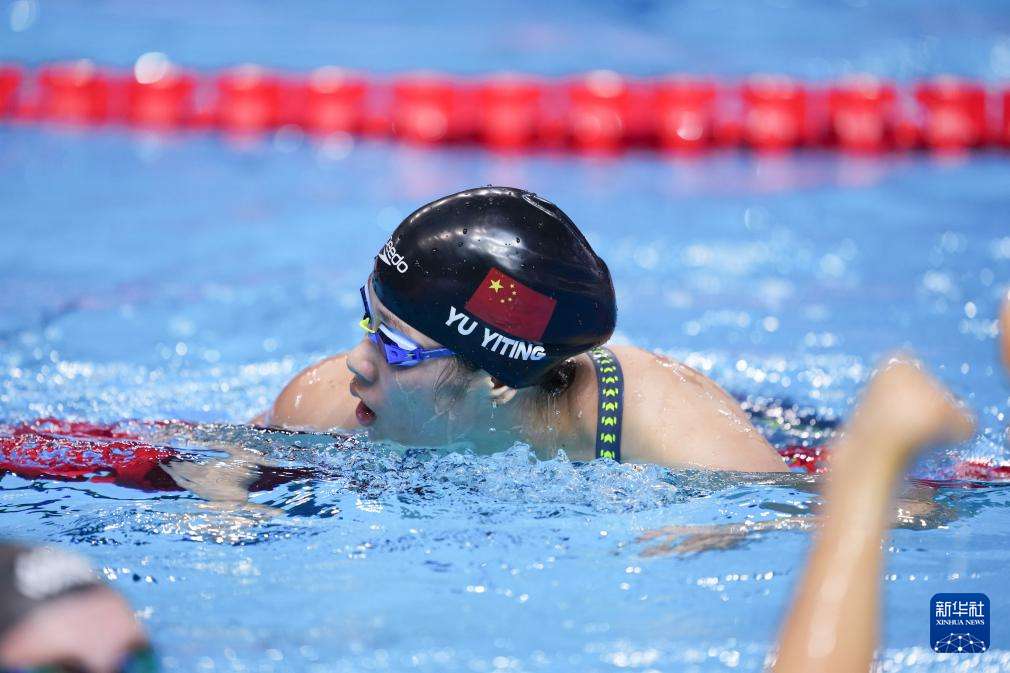 7月27日,中国队第三棒选手余依婷在比赛中。由程玉洁、柳雅欣、余依婷和吴卿风组成的中国队最终位列第四。新华社记者 伍志尊 摄