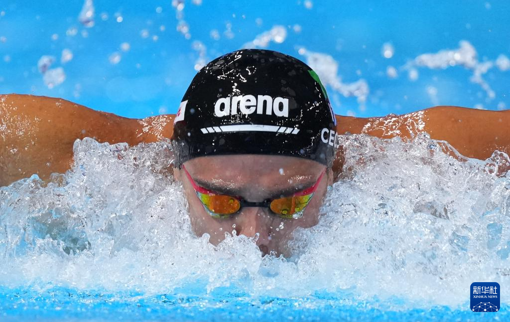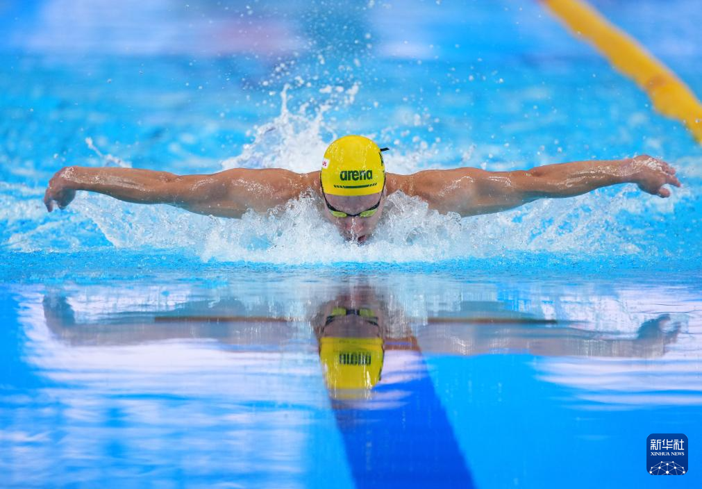 当日,2025年世界游泳锦标赛游泳男子100米蝶泳半决赛在新加坡举行。