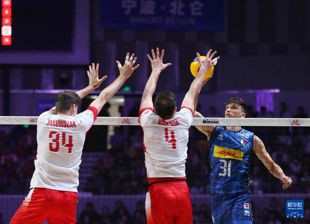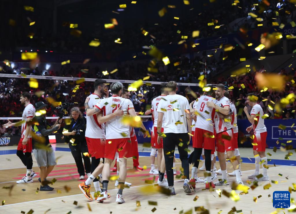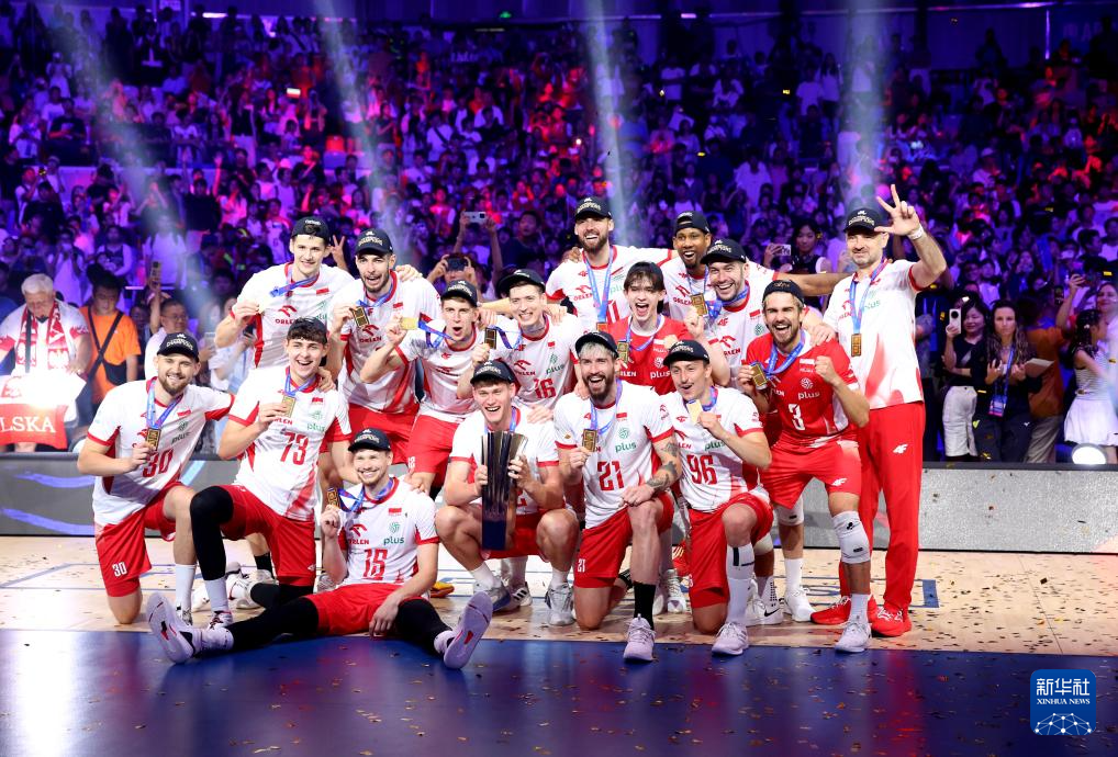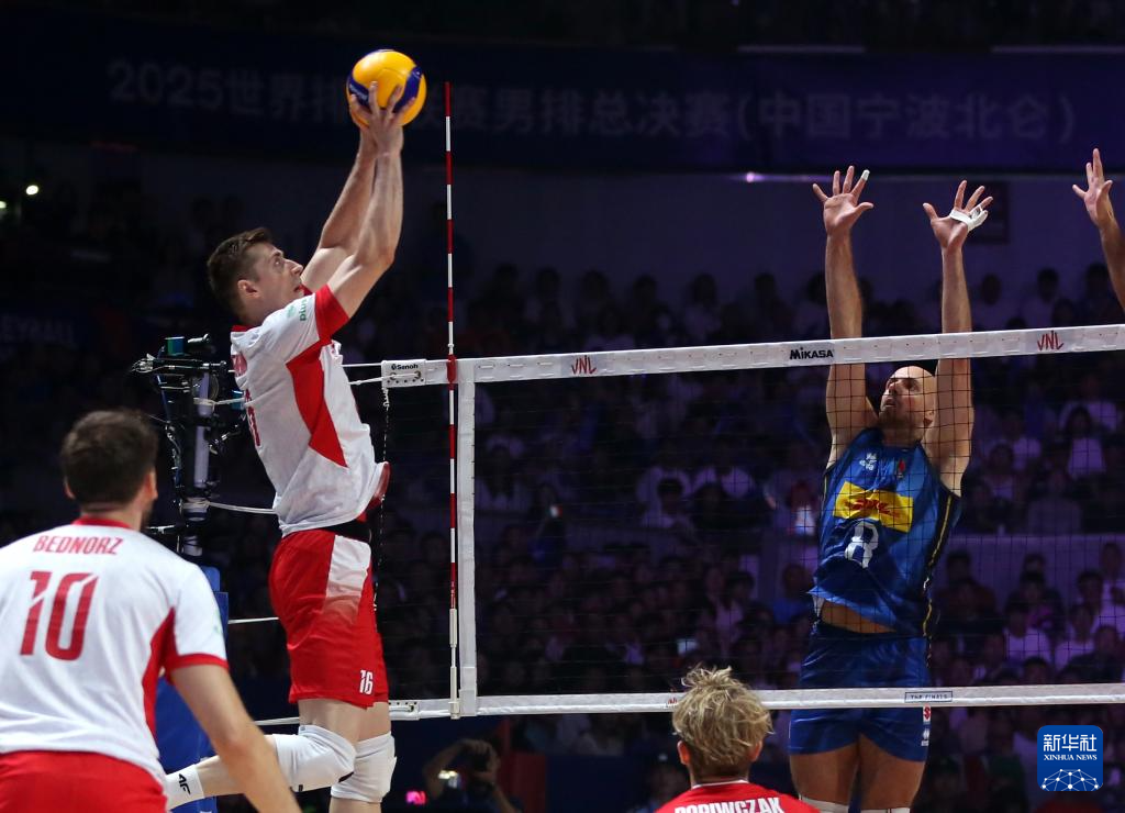 当日,在浙江省宁波市北仑区举行的2025世界排球联赛男排总决赛(中国宁波北仑)决赛冠亚军争夺赛中,波兰队3比0战胜意大利队,获得冠军。