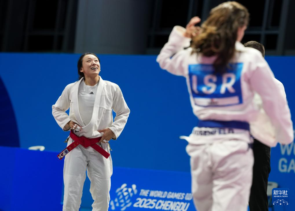 当日,在2025年成都世运会柔术女子寝技63公斤级决赛中,韩国选手成基罗战胜以色列选手罗森费尔德,夺得冠军。