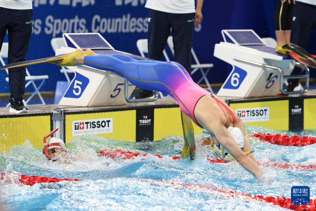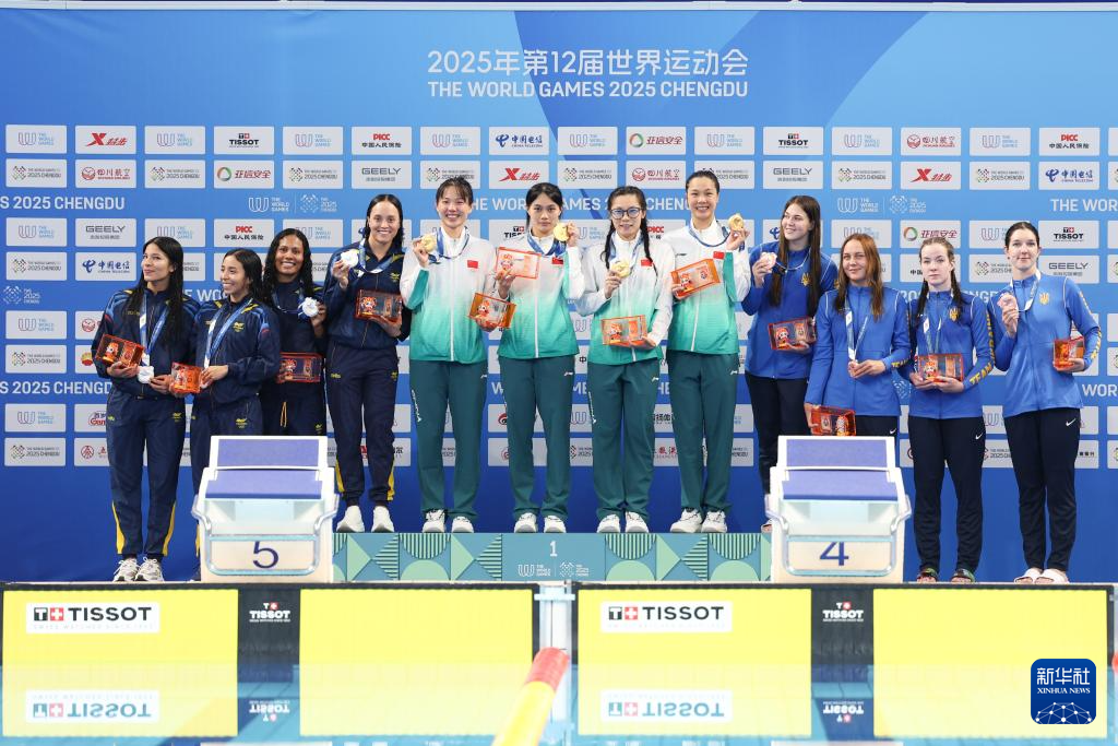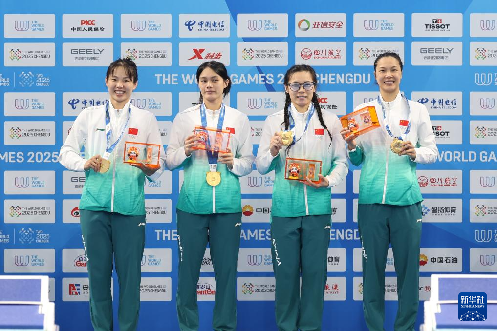 当日,2025年成都世运会女子4x100米水面蹼泳接力决赛举行,中国队获得冠军。