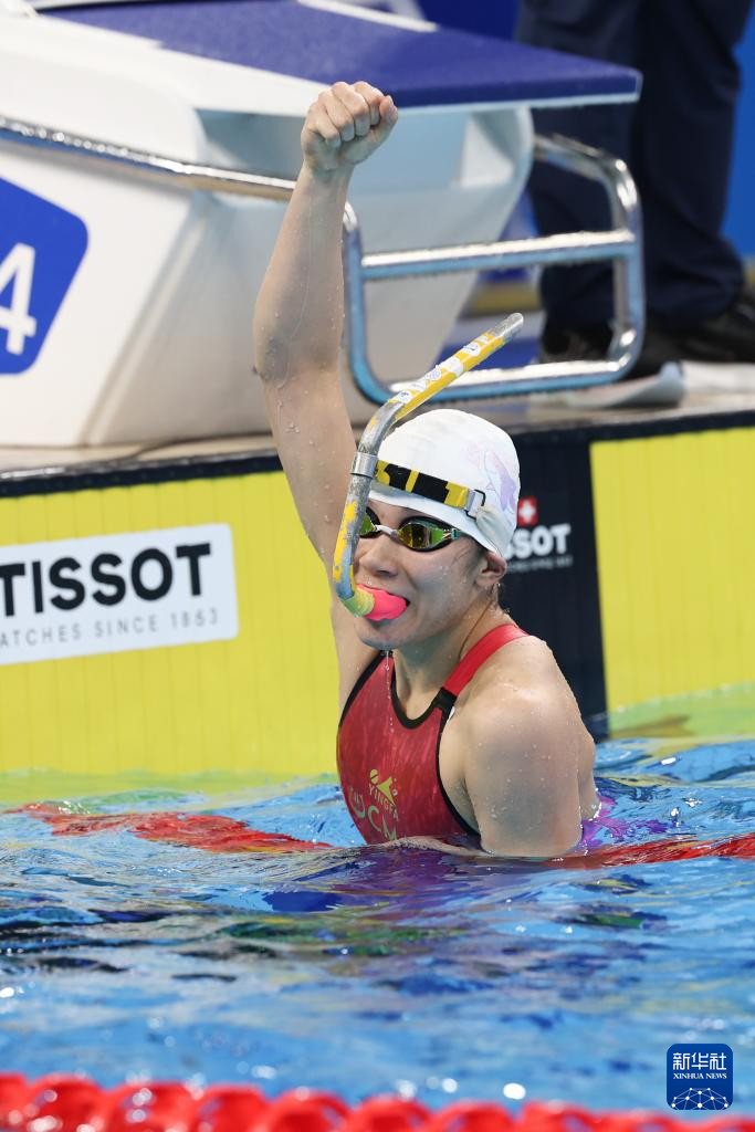 8月10日,中国队第四棒选手胡瑶瑶在夺冠后庆祝。