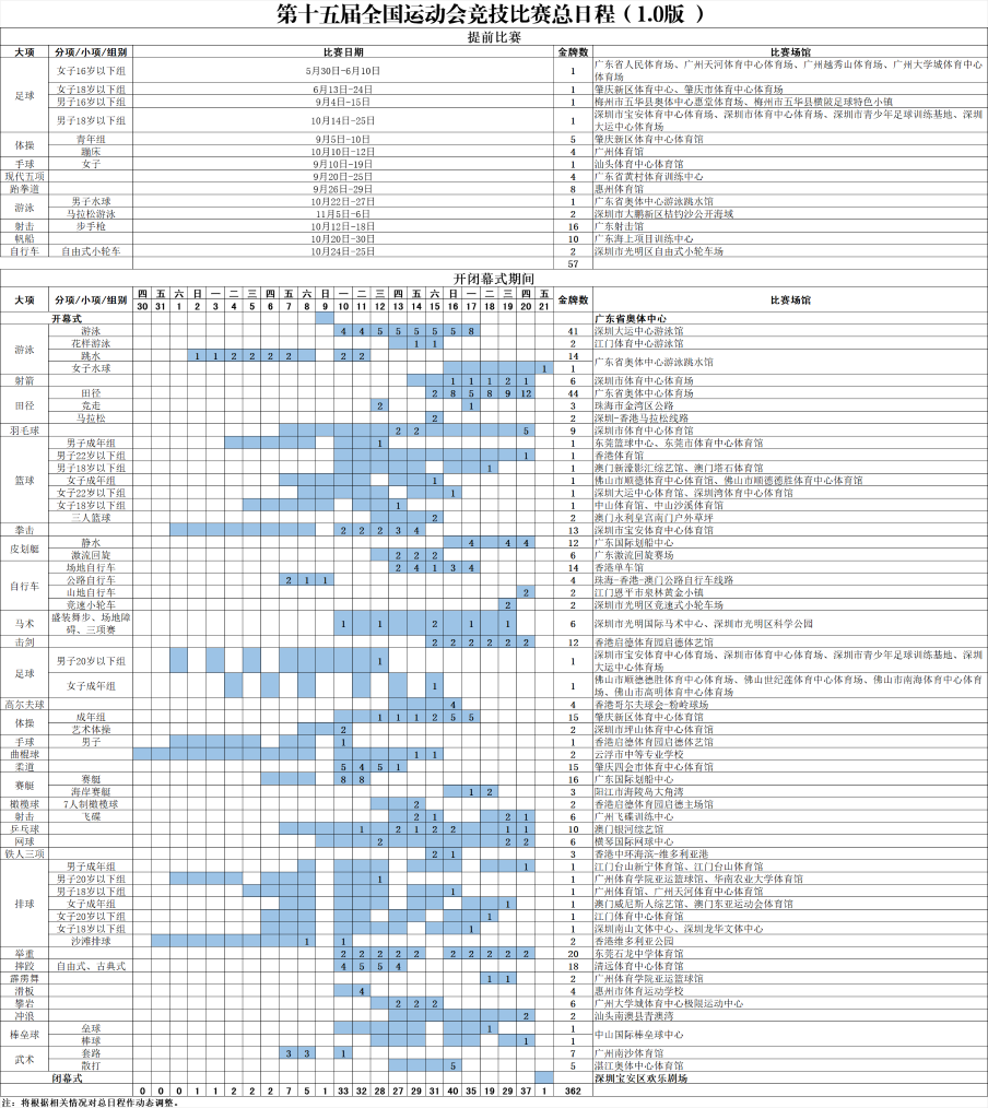 十五运会总竞赛日程。图片来源:官方票务网站