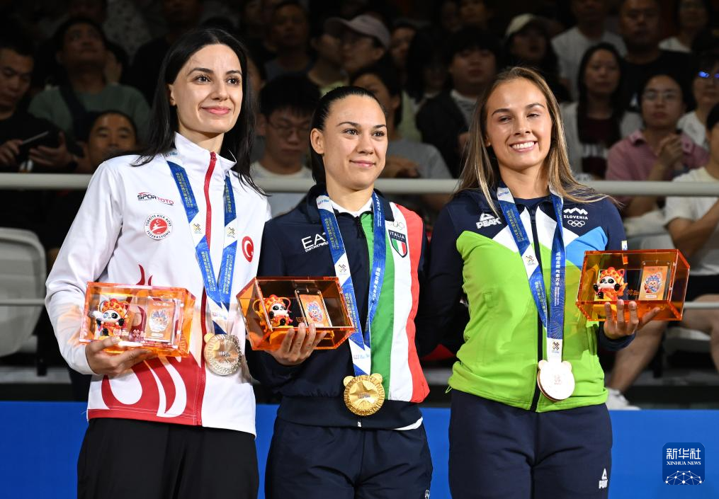 当日,2025年成都世运会自由搏击女子半接触50公斤级颁奖仪式举行。