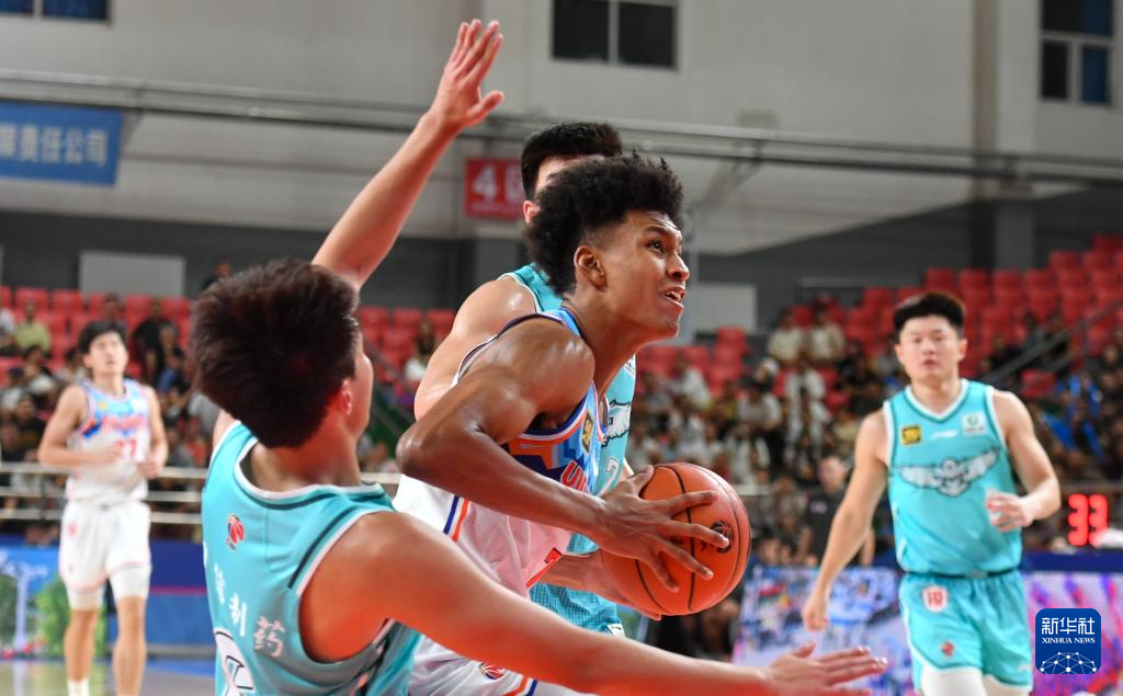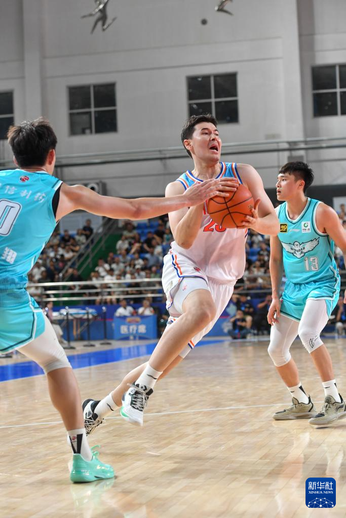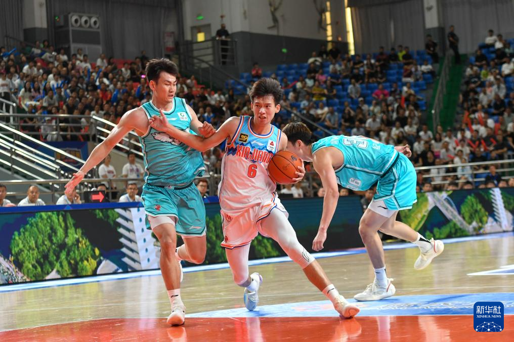 8月16日,新疆伊力特队球员阿不都沙拉木(中)在比赛中突破。