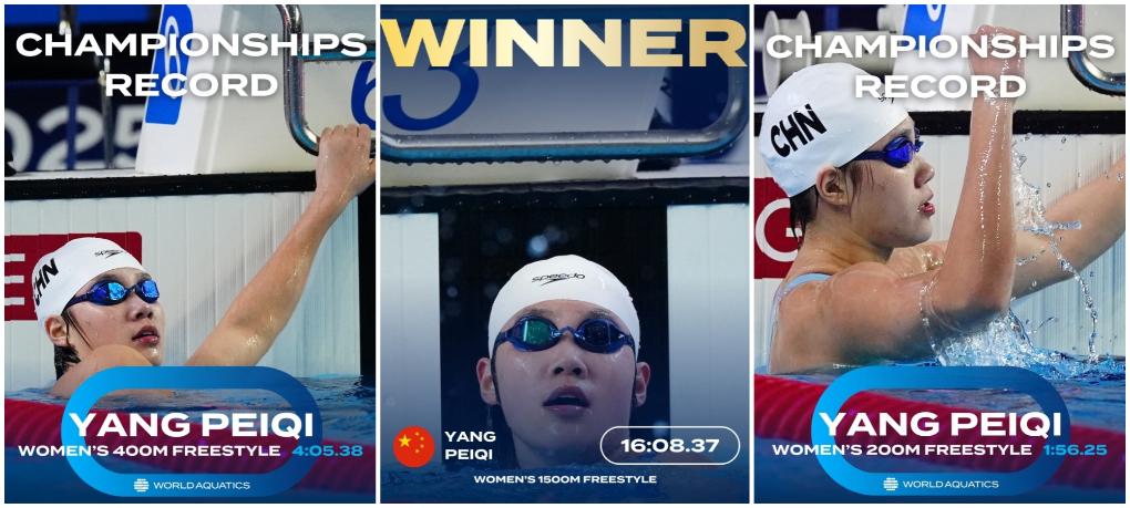 杨佩琪夺冠海报集锦。世界泳联官网图片