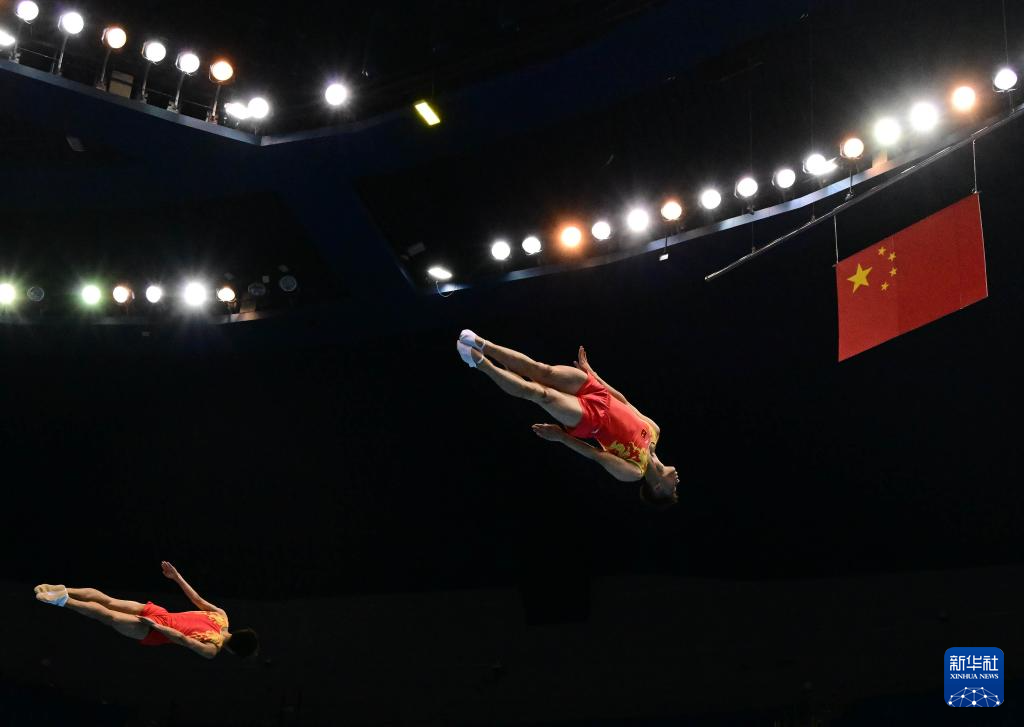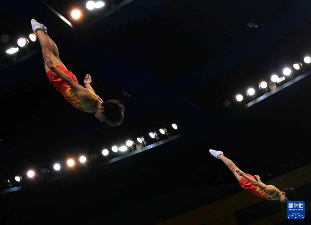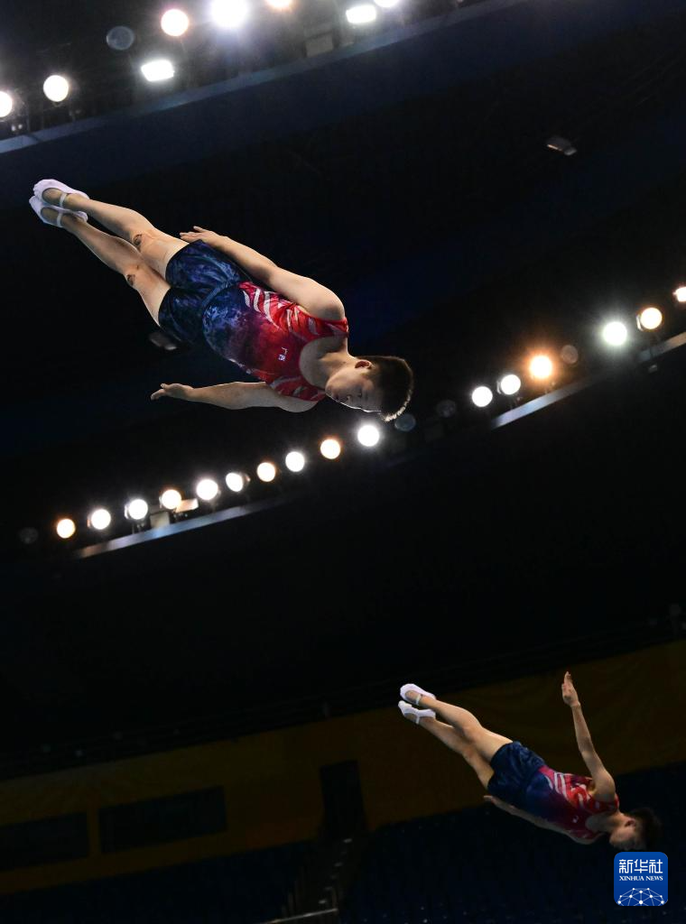 9月4日,广西队组合陈港/李超铭在男子双人同步预赛中。