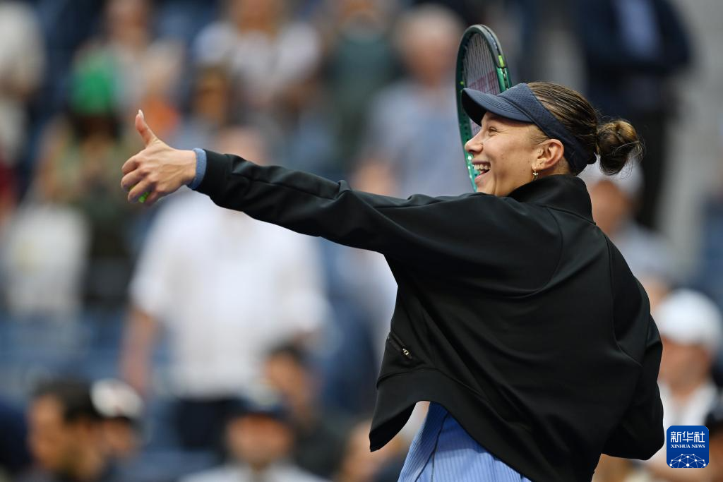 9月3日,阿尼西莫娃庆祝比赛获胜。