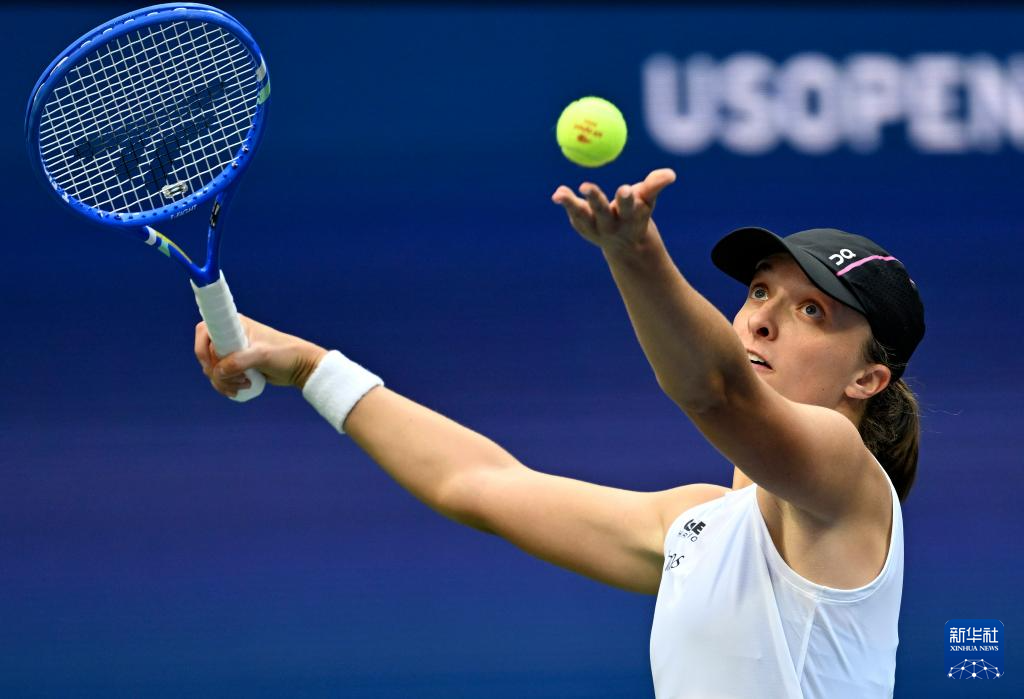 9月3日,斯维亚特克在比赛中发球。