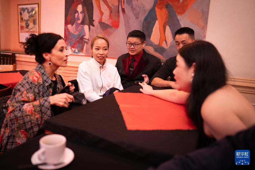 9月3日,苏君强(中)和郭星竹(左二)在探戈世界杯后的冠军舞会上与其他选手交流。新华社发(马丁·萨巴拉摄)