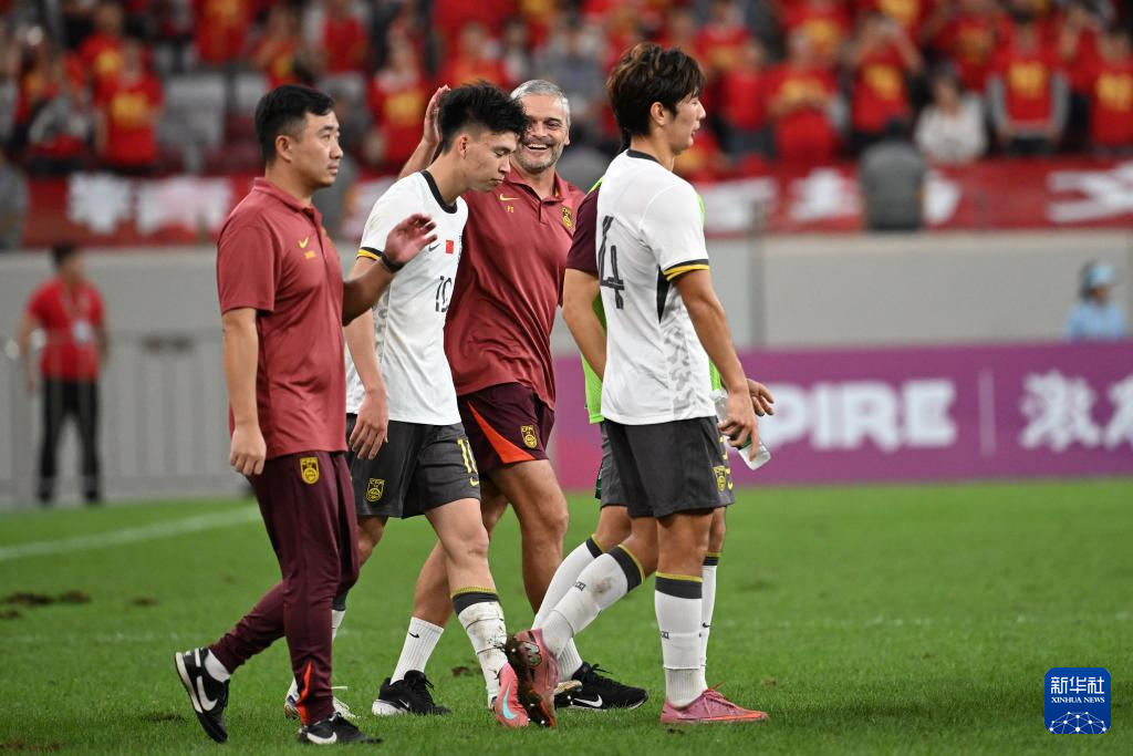 9月6日,中国队主教练安东尼奥·普切(左三)在比赛后。