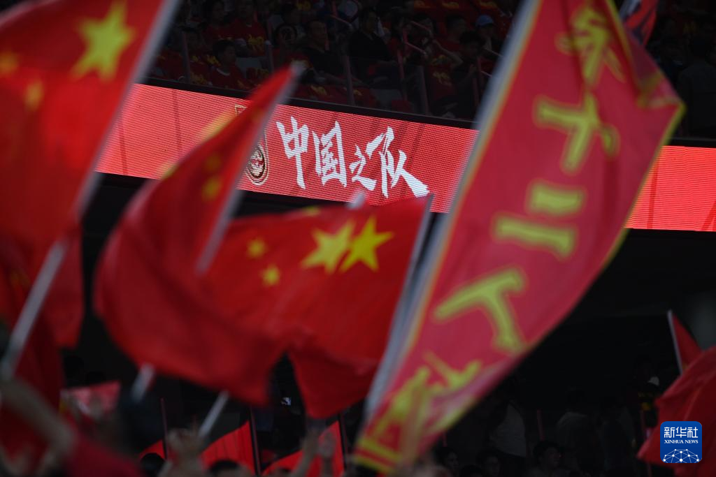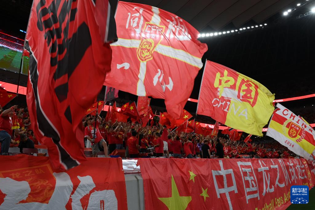9月6日,球迷在看台为中国队加油助威。