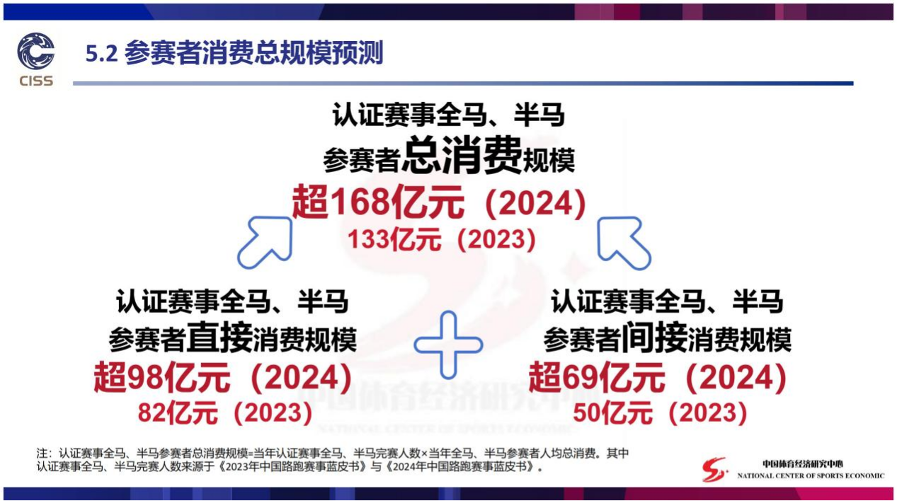 无锡马拉松的经济效应只是全国马拉松热的一个缩影。《中国路跑人群消费与赛事经济发展趋势与特征研究报告》显示,2024年,中国田径协会认证路跑赛事参赛者年度消费总规模达168亿元,相较于2023年增长了26%。其中,服装鞋帽、可穿戴专业装备等直接消费超过98亿元,因参赛衍生的吃、住、行、游、购、娱等间接消费超过69亿元。
