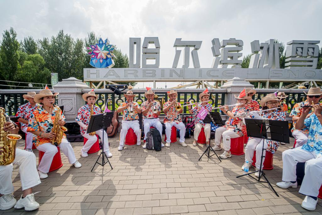 图为哈尔滨马拉松比赛现场的音乐演出。图片来自主办方
