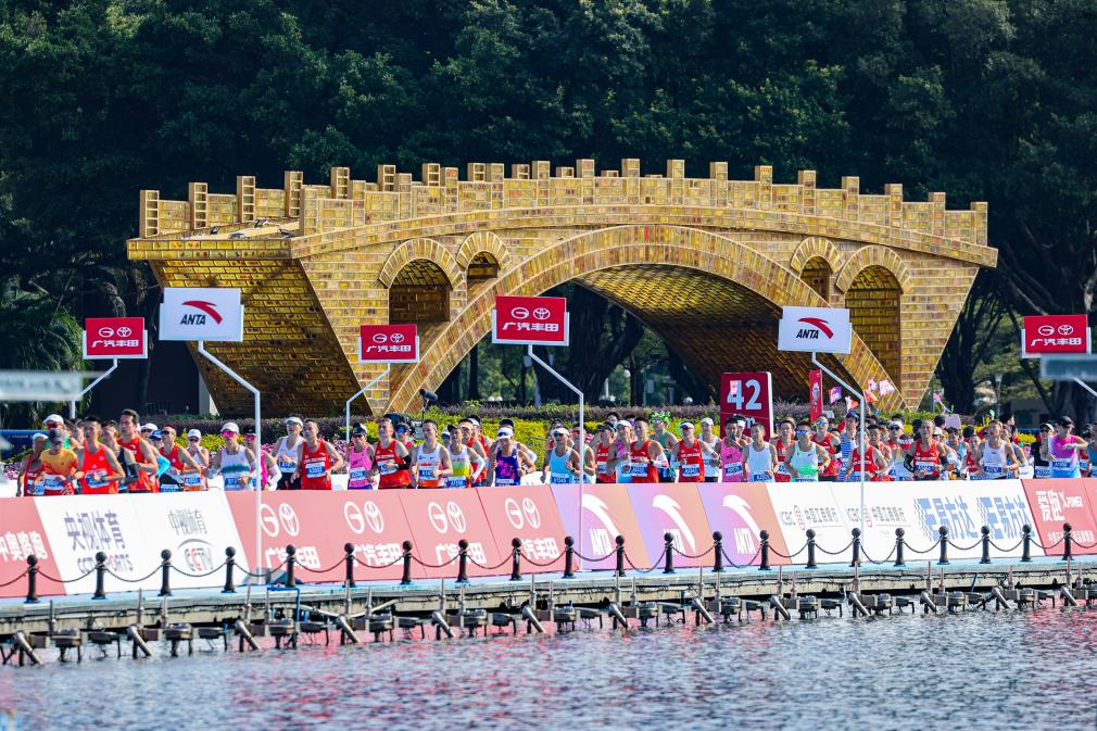 2024年12月8日,参赛选手在比赛中。当日,2024广州马拉松鸣枪开跑。新华社发(黄晋文摄)