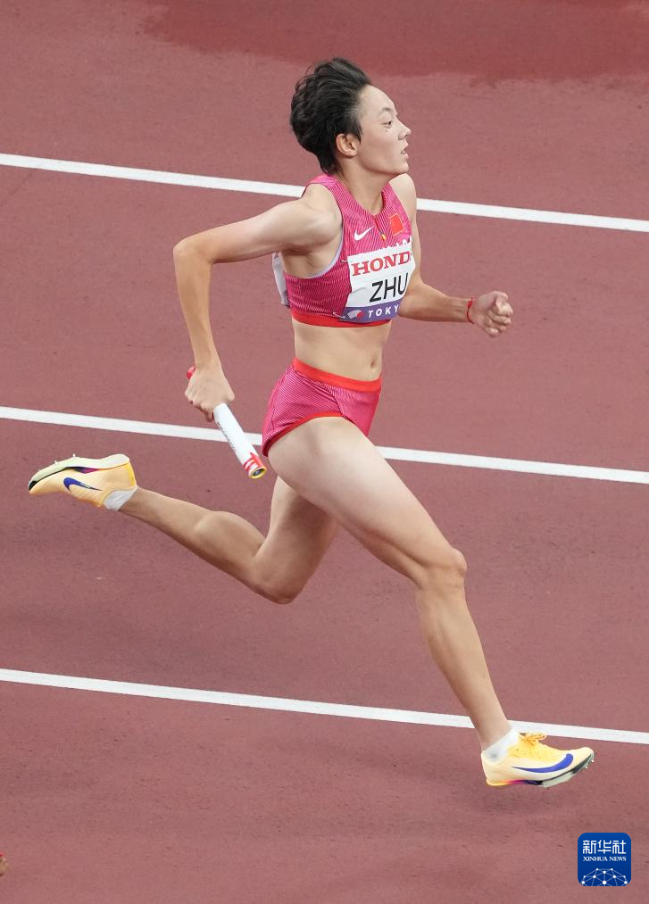 9月20日,中国队第三棒选手朱俊颖在比赛中。