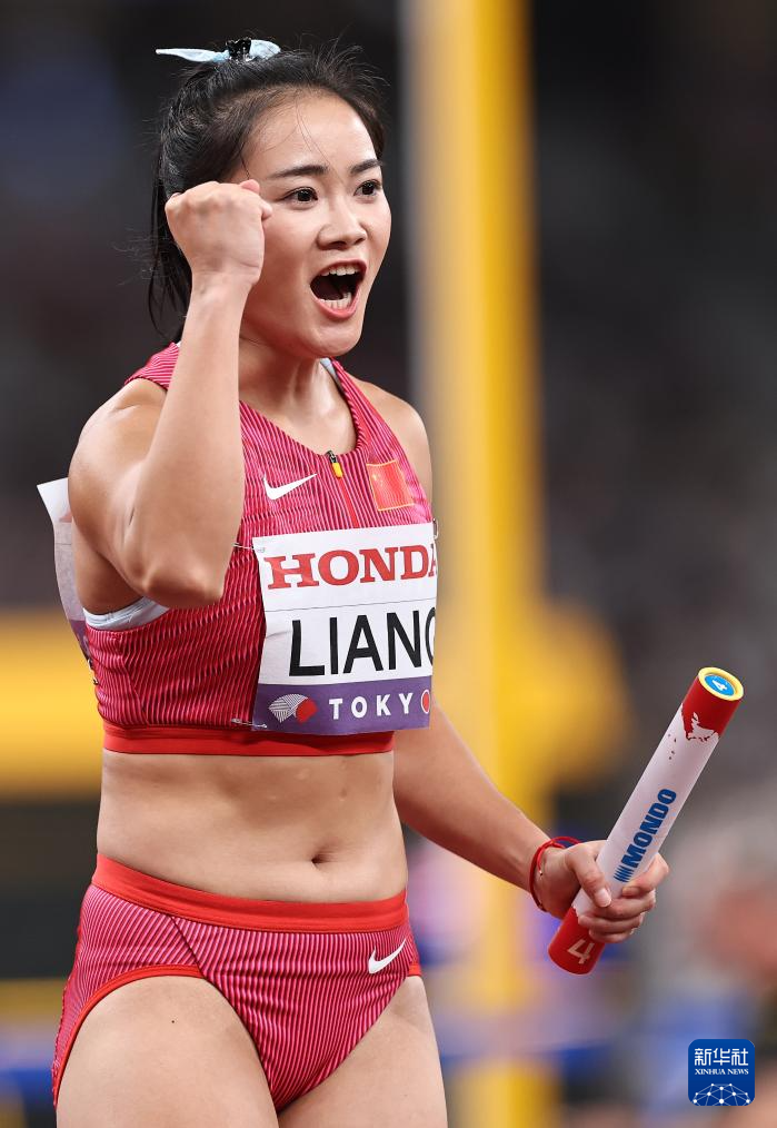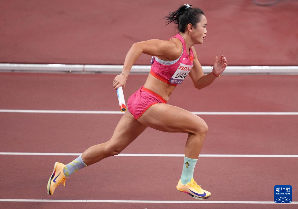 9月20日,中国队第一棒选手梁小静在比赛中。