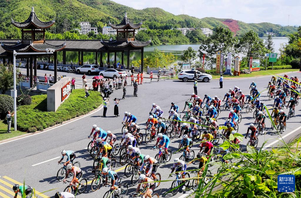 当日,第十三届环鄱阳湖国际自行车大赛最后一个赛段比赛在江西省赣州市上犹县举行。
