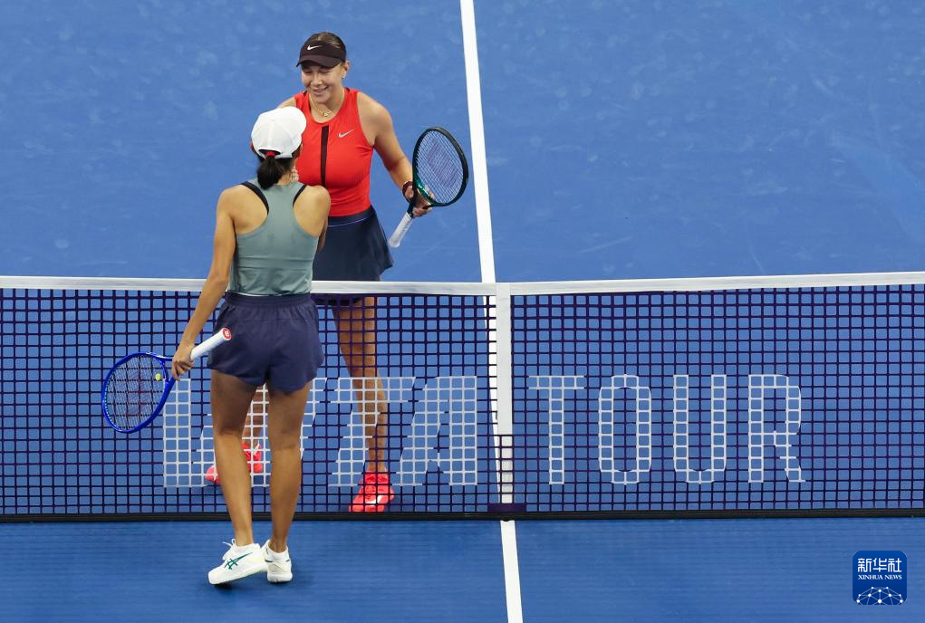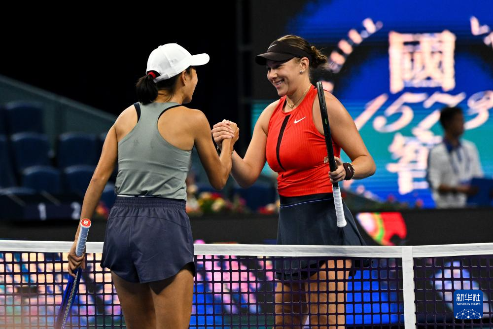9月28日,阿尼西莫娃(右)与张帅在比赛后致意。
