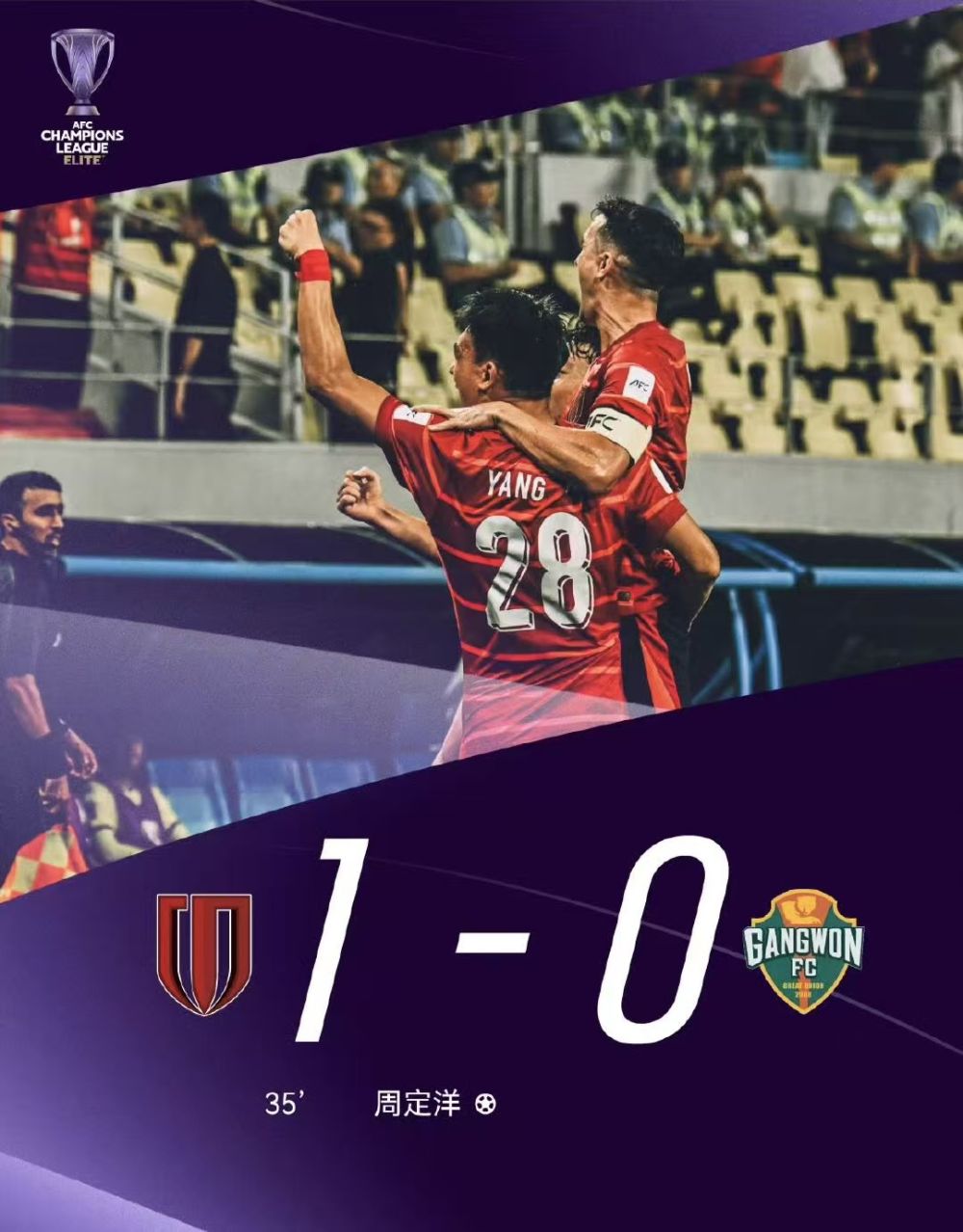 新华社成都9月30日电(记者陈地)30日晚,中超球队成都蓉城迎来队史首个亚冠精英联赛主场,对阵韩国球队江原FC。依靠上半时队长周定洋的凌空扫射,成都蓉城1:0力克对手,收获队史首场亚冠精英联赛胜利,这也是本赛季中超球队在亚冠正赛的首胜。