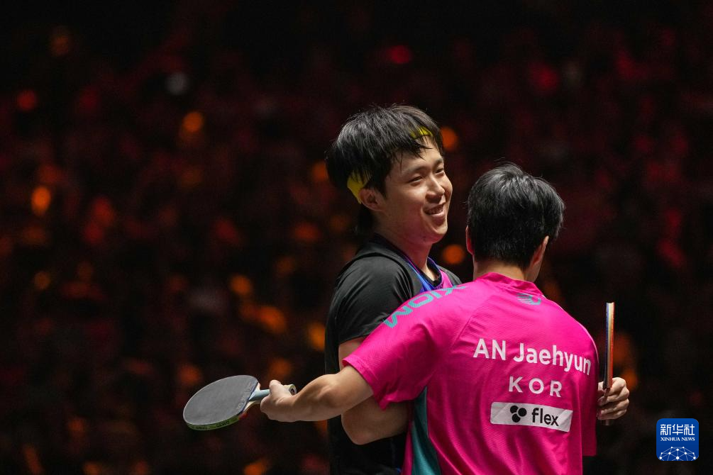10月2日,王楚钦(左)和安宰贤在比赛后相互致意。