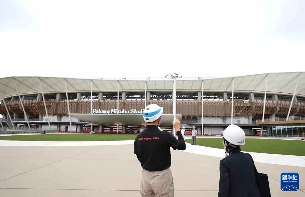 10月10日,瑞穗体育场工作人员向记者介绍体育场建设情况。这里将承办2026年日本爱知·名古屋亚运会开闭幕式及田径项目比赛。