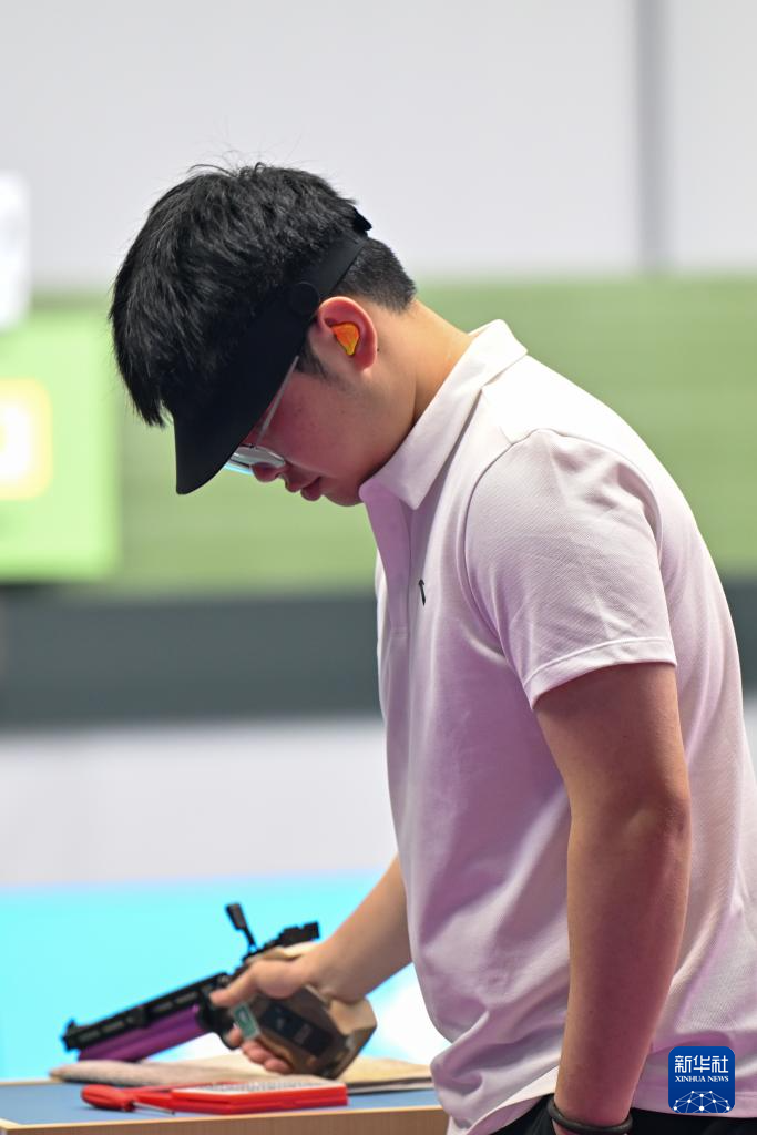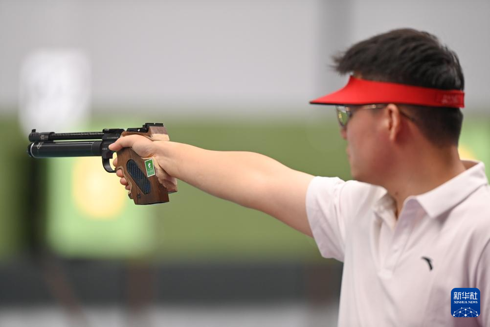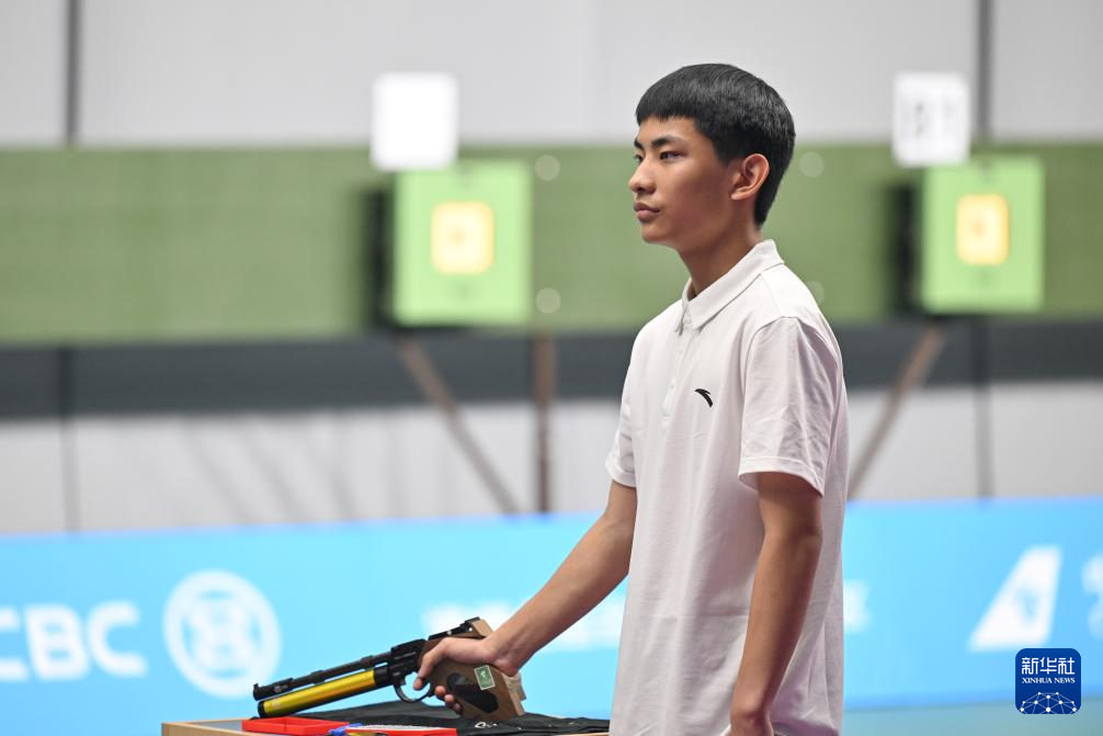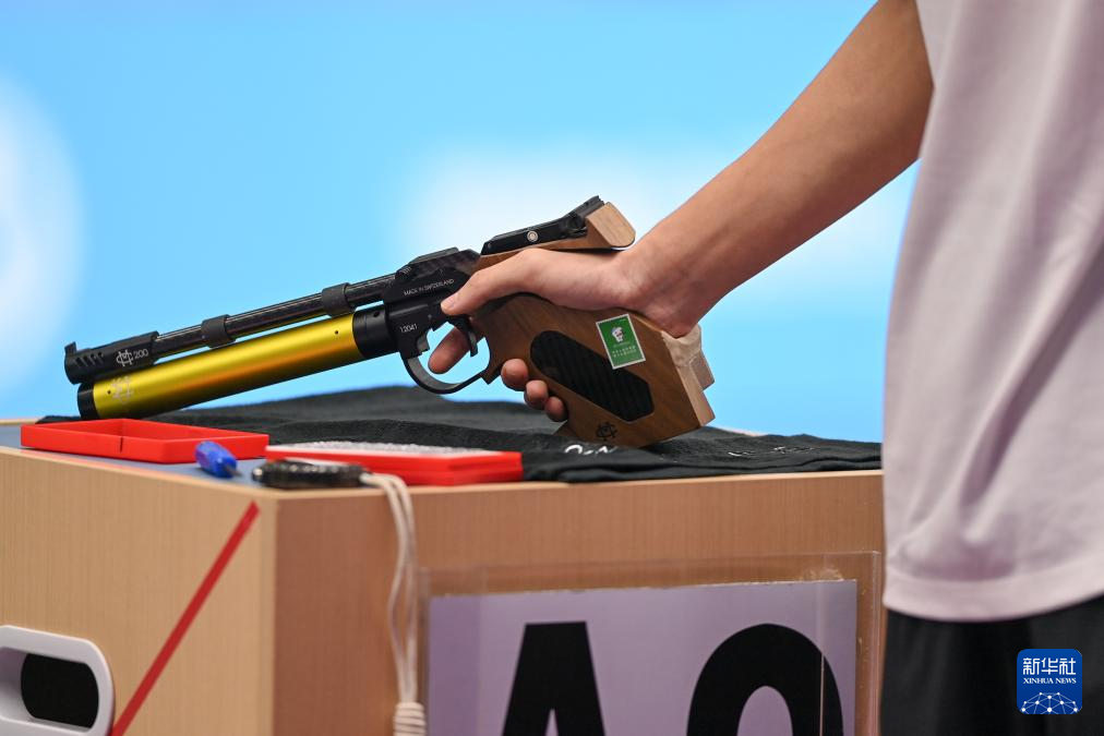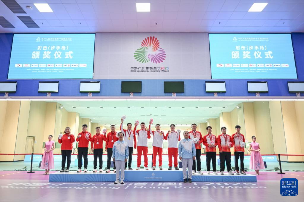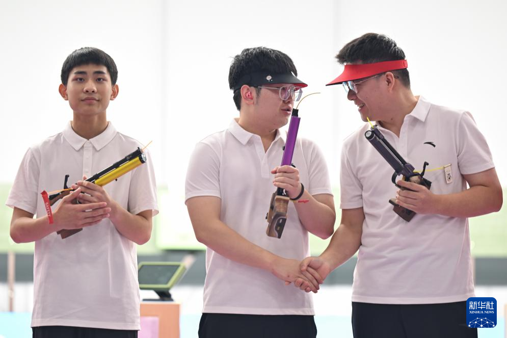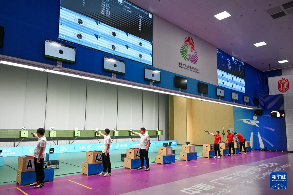 当日,第十五届全运会射击男子10米气手枪团体决赛在广州举行。