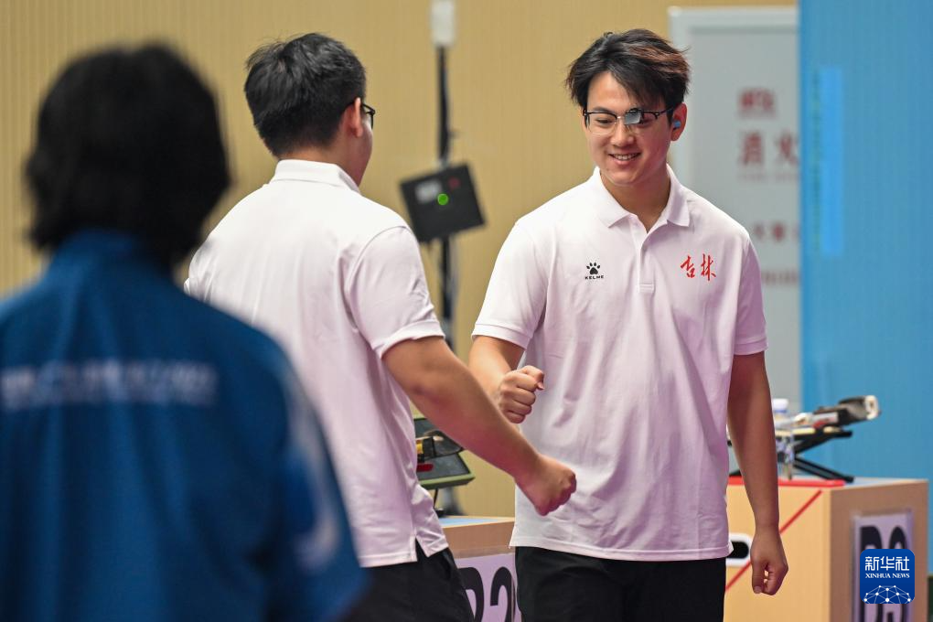 10月16日,吉林队选手王振萧齐(右)与队友沈子淇在赛后庆祝。最终,由王振萧齐、沈子淇、丁椿沣组成的吉林队获得季军。