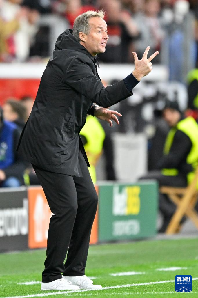 10月21日,勒沃库森队主教练尤尔曼在场边指挥。
