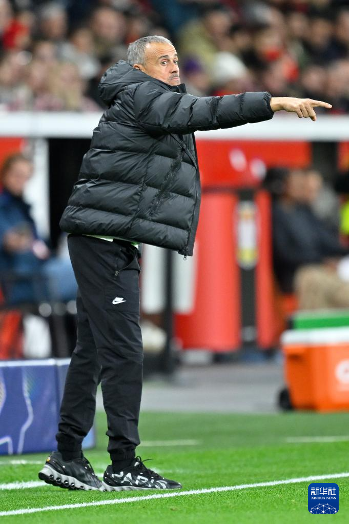 10月21日,巴黎圣日耳曼队主教练恩里克在场边指挥。