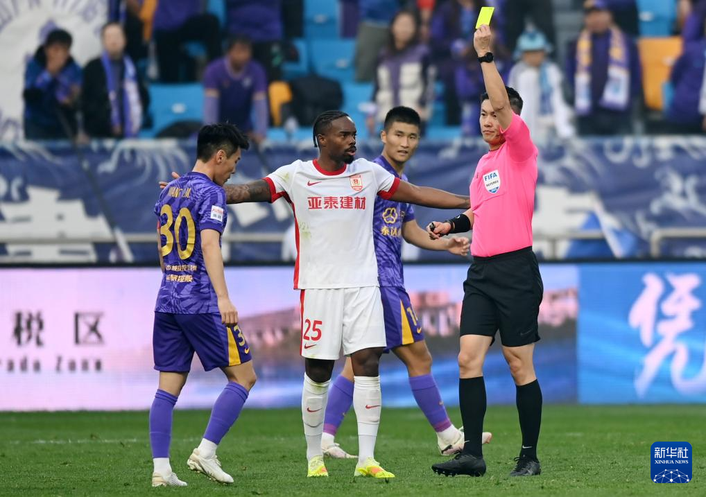 10月25日,长春亚泰队球员王禹(左二)在比赛中被主裁判出示红牌。
