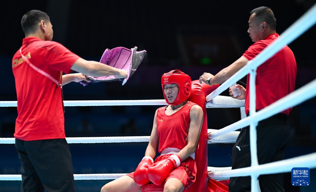 当日,在广东省深圳市举行的第十五届全国运动会拳击女子66公斤级八分之一决赛中,内蒙古队选手杨柳战胜四川队选手黄琬钧,晋级下一轮。