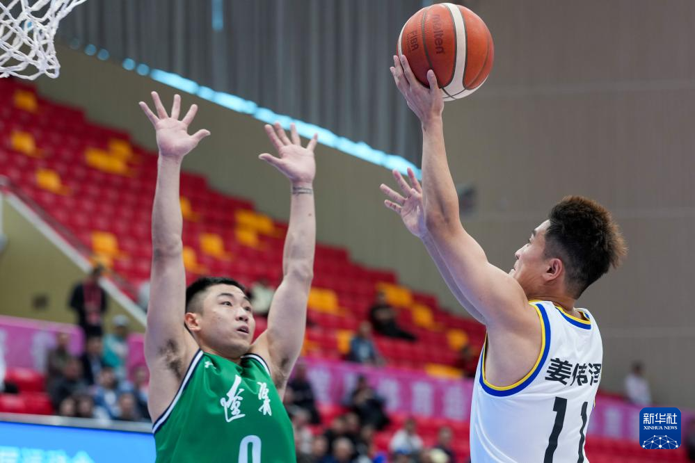 11月4日,吉林队球员姜伟泽(右)在比赛中上篮。