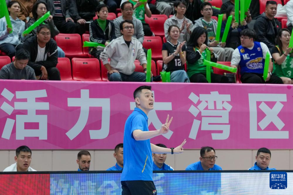 11月4日,辽宁队主教练杨鸣(前)在场边指挥。