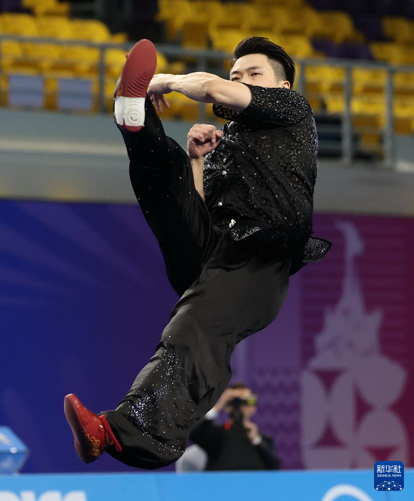 11月7日,山西队选手高晓彬在男子长拳比赛中。
