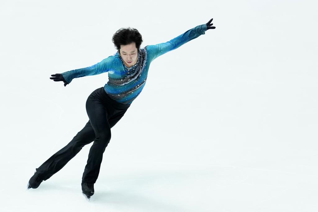 11月7日,中国选手金博洋在男子单人滑短节目比赛中。他以83.92分的成绩位列第四名。新华社记者 贾浩成 摄