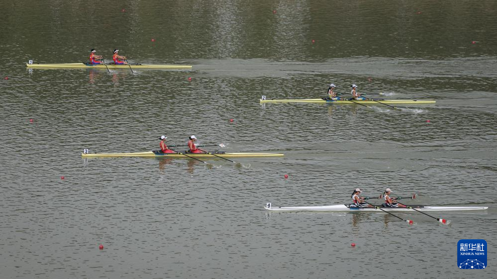 11月8日,参赛选手在女子双人双桨半决赛中。