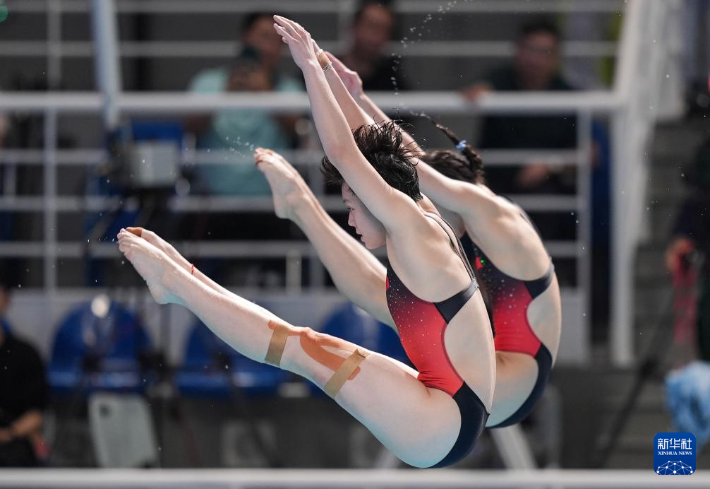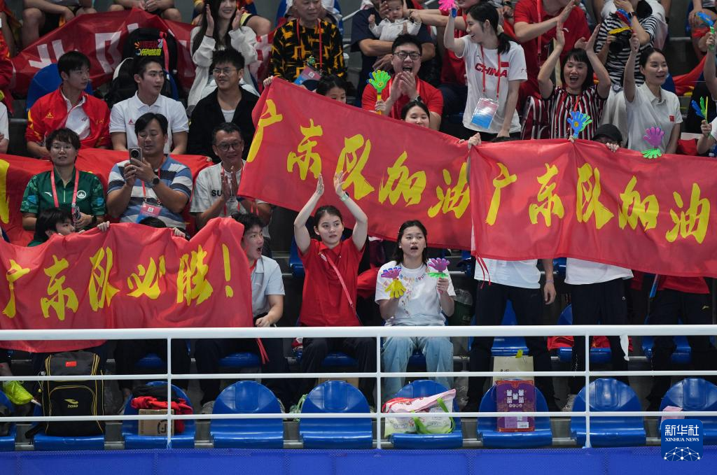 当日,第十五届全国运动会女子双人3米跳板决赛在广州举行。最终,广东队组合陈艺文/林珊获得冠军,陕西队组合龙艺萍/司雅杰、湖北队组合邓梦圆/叶林希分获亚军、季军。