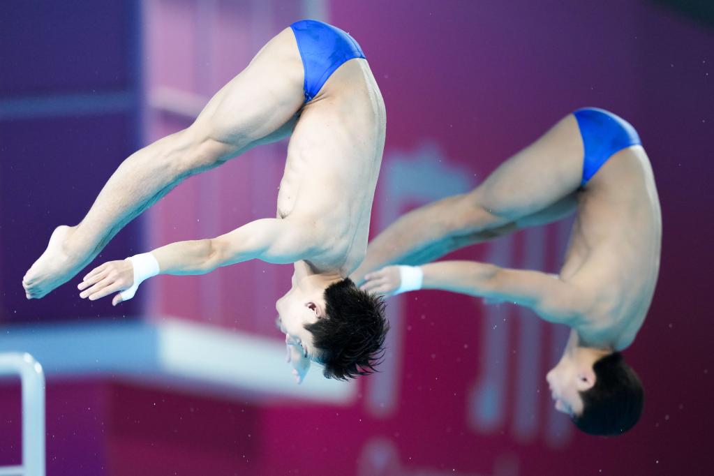 在随后进行的男子双人10米台决赛中,陕西组合白钰鸣/杨昊延续预赛优势,从第一跳起,将总分第一名的优势一直保持到最后,斩获金牌;老将陈艾森携手新锐朱子锋为广东队平稳摘银;黄子淦/杨凌为天津队收获一枚铜牌。