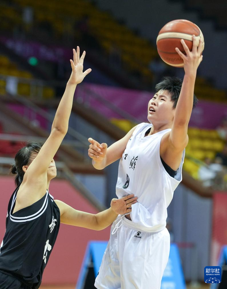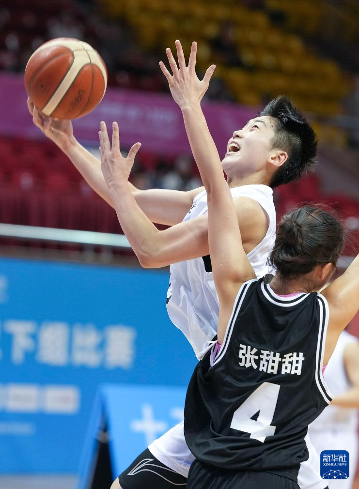 11月9日,江苏队球员汪欣悦(右)在比赛中上篮。