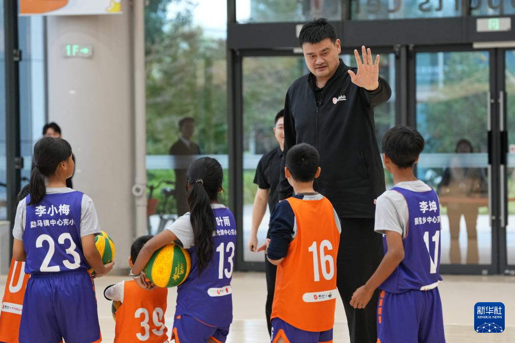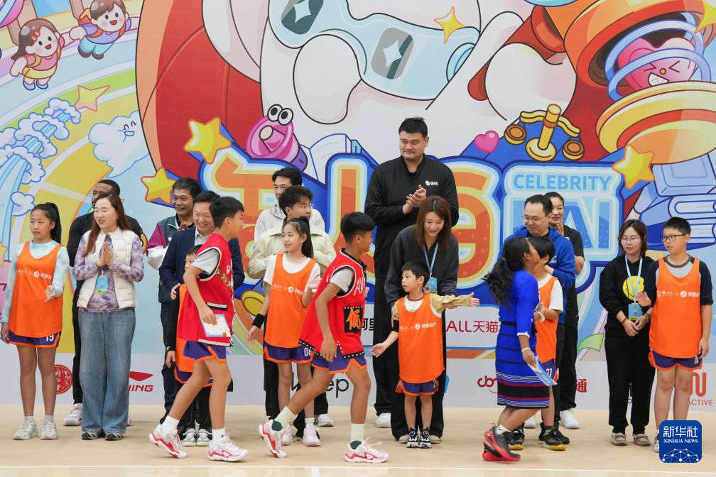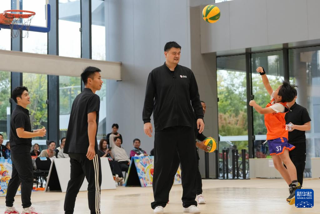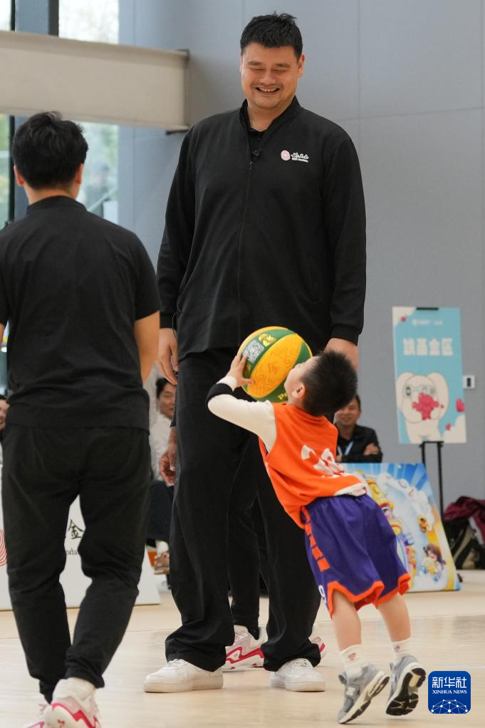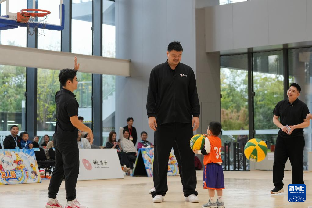 11月9日,在“大咖篮球训练课”开始前,姚明与小球员集体亮相。